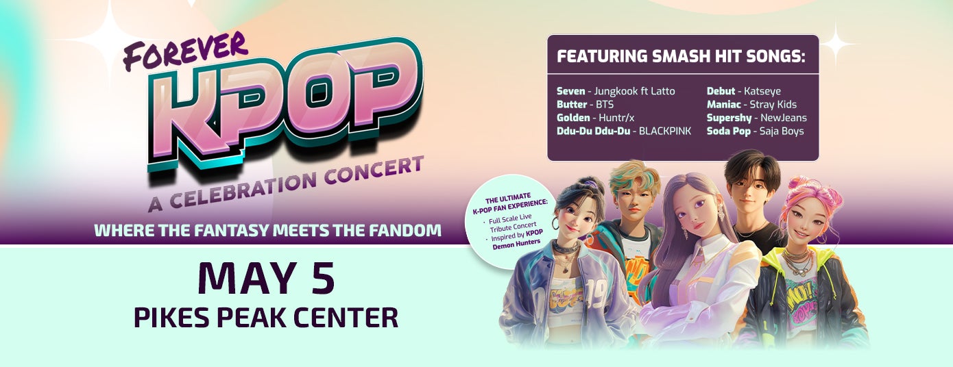 Forever K-Pop - A Celebration Concert is coming to Pikes Peak Center on Tuesday, May 5, at 7:00pm! Tickets go on sale on Friday, February 6, at 10am and are available online at AXS.com or in person at the Pikes Peak Center box office.